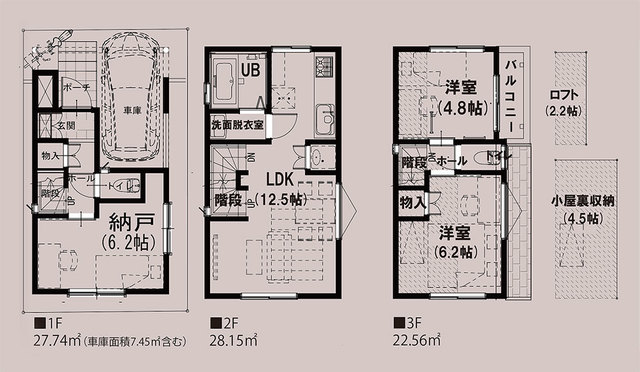 ■納屋(6.2帖)、小屋裏収納(4.5帖)