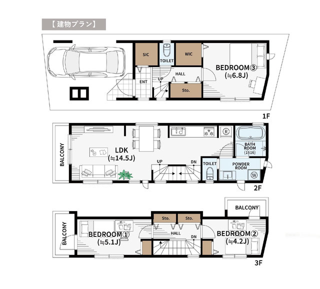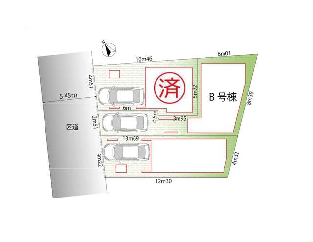 | 土地面積 | 54.41m2(約16.46坪) | 建物面積 | 94.43m2(約28.57坪) |