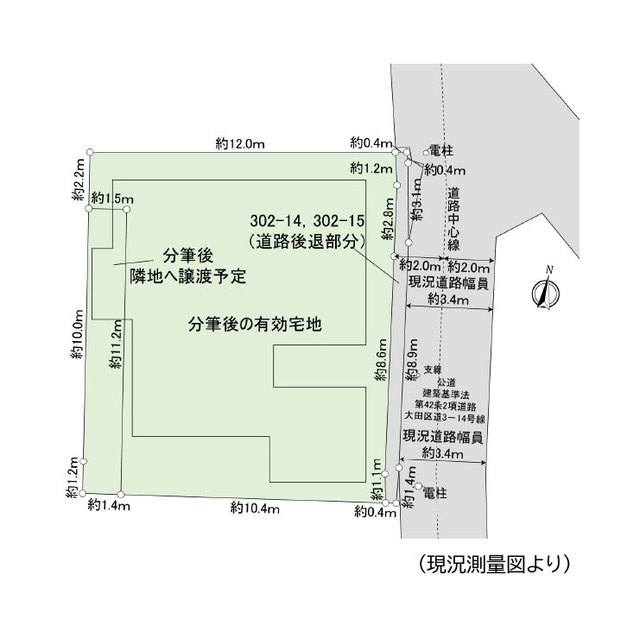 ・建物解体後に西側隣地へ土地を約5.1坪譲渡する予定です。