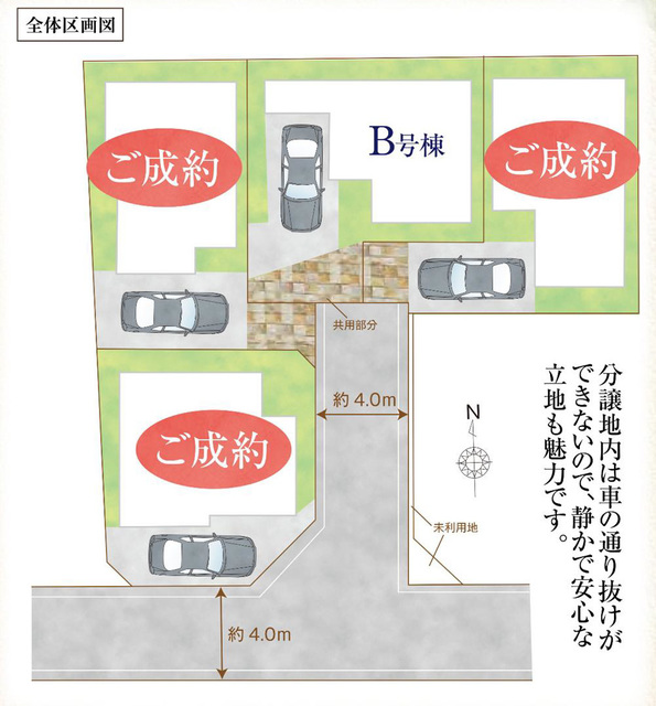 ■分譲地内は車の通り抜けができないので、静かで安心。