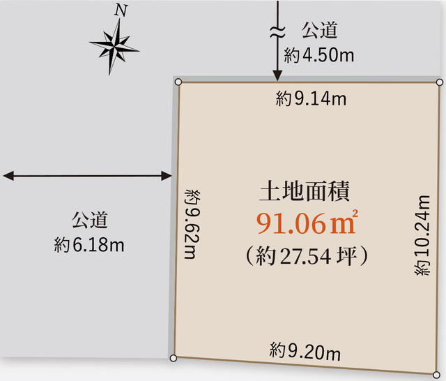 | 土地面積 | 91.06m2(約27.55坪)(実測) | ||
