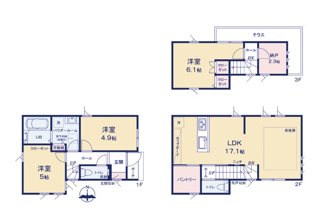 | 土地面積 | 58.51m2(約17.7坪) | 建物面積 | 85.69m2(約25.92坪) |