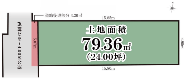 | 容積率 | 160% | 接道状況 | 西側2.69~4.00m 公道 |
