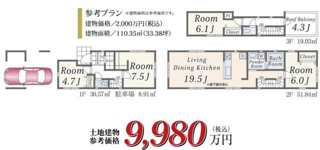 | 土地面積 | 76.36m2(約23.1坪) | ||
