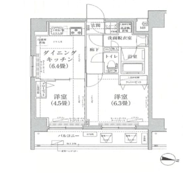 | 方角 | 東 | 専有面積/建物面積 | 41.10m2 | ||
