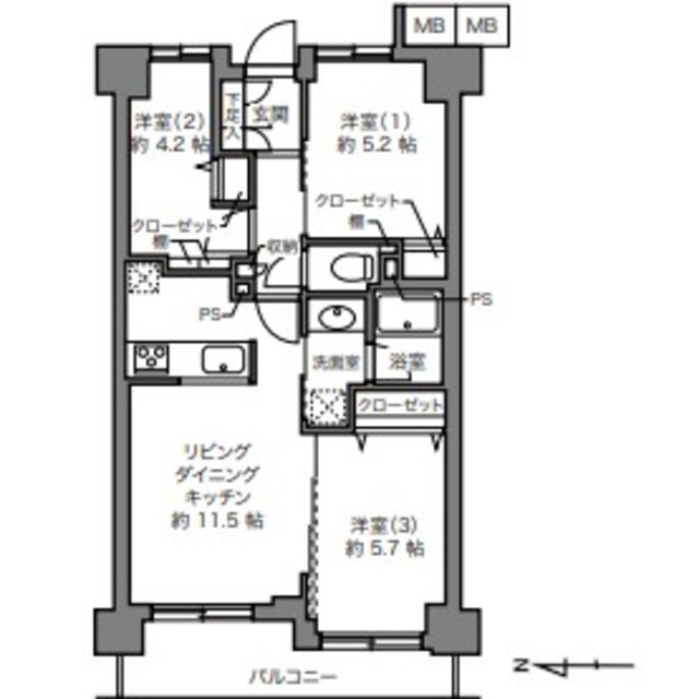 専有面積 57.15m2 所在階 5階