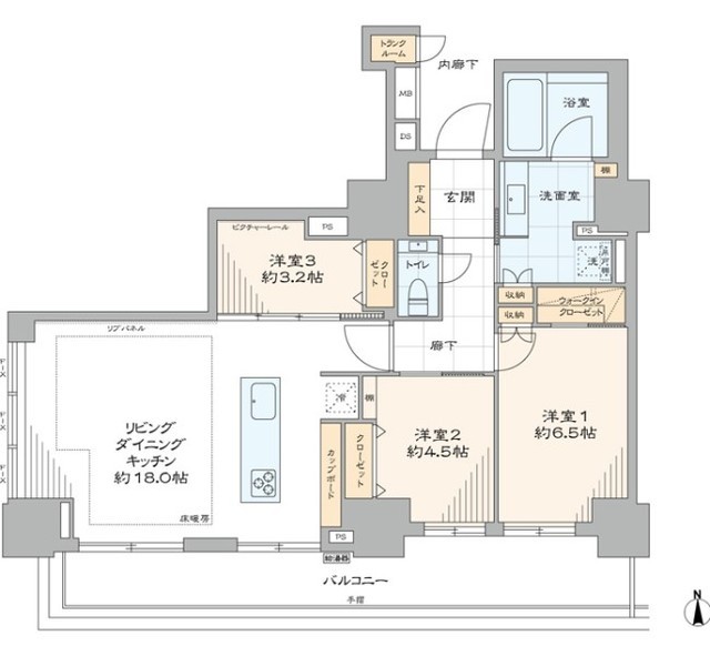 専有面積 78.56m2 バルコニー面積 18.75m2
