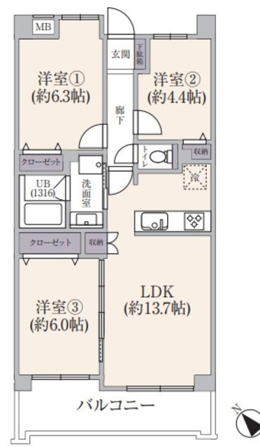 間取り 3LDK 方角 南東