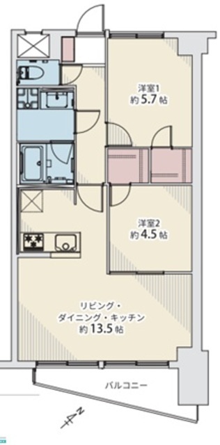 専有面積 55.00m2 バルコニー面積 5.75m2