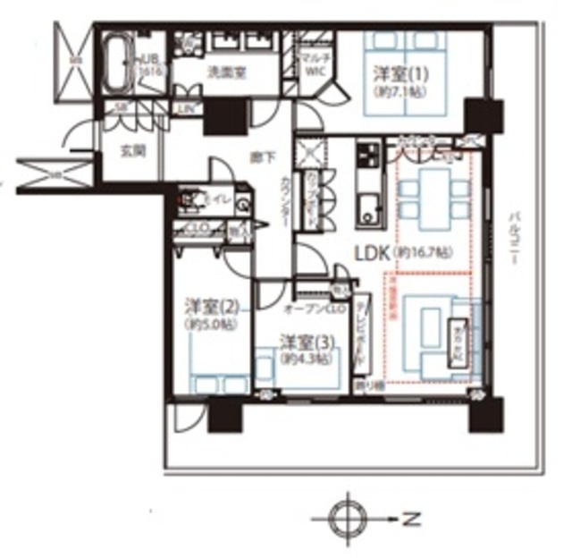 専有面積 81.53m2 バルコニー面積 28m2