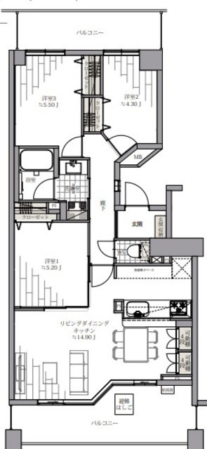 専有面積 68.98m2 バルコニー面積 18.14m2