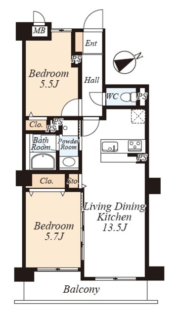 間取り 2LDK 方角 南東