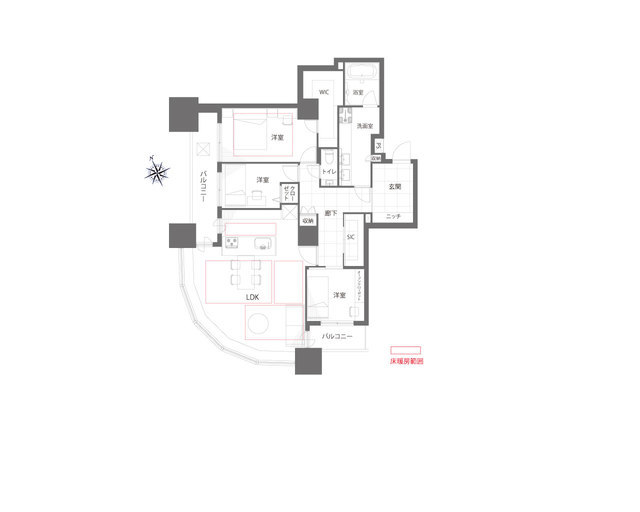 専有面積 106.23m2 バルコニー面積 11.49m2