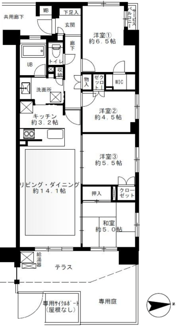 4LDK+収納多数/専用庭+テラス合計約20.25㎡