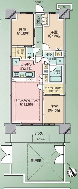 専有面積 72.27m2 所在階 1階