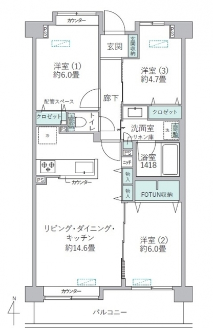 ■南向き67.62平米の3LDK