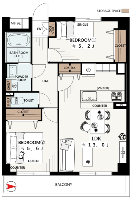 ■ゆとりの2400サイズ!カンター付対面キッチン