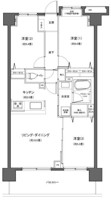 専有面積 65.46m2 バルコニー面積 10.8m2
