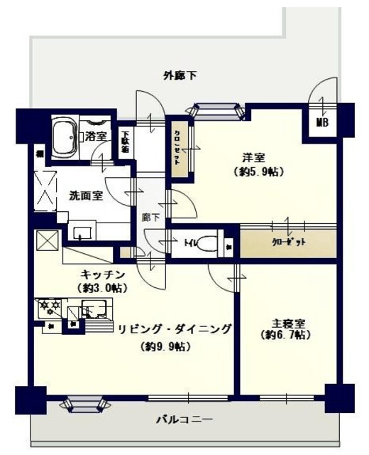 間取り 2LDK 方角 南西