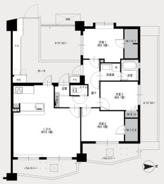 ■3面バルコニー