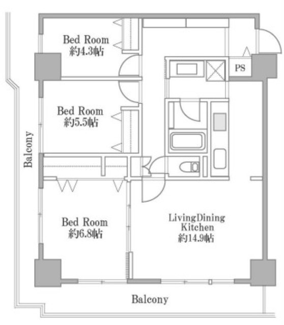 | 専有面積 | 79.43m2 | バルコニー面積 | 22.27m2 |