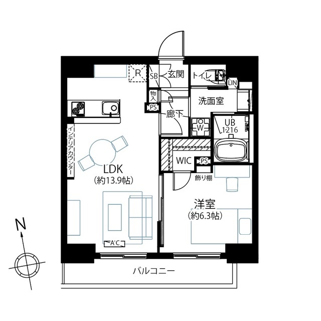 | 専有面積 | 46.03m2 | 所在階 | 13階 |