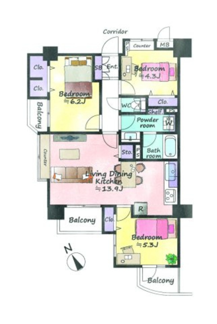 • 3LDK  69.56m2