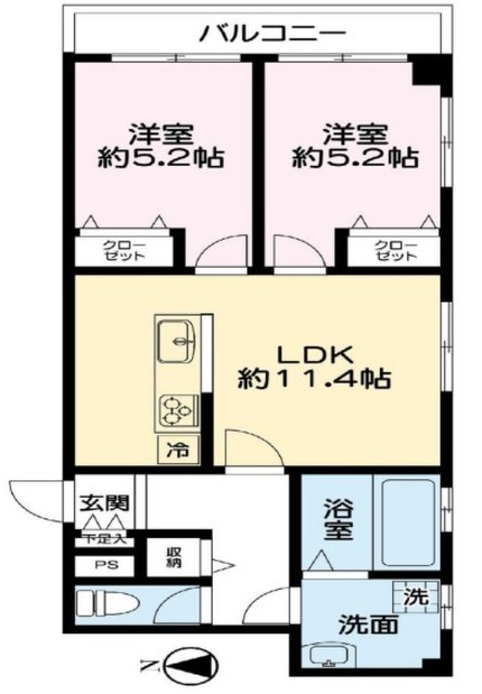 | 間取り | 2LDK | 方角 | 東 |