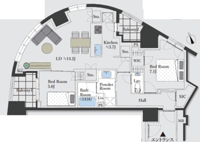| 専有面積 | 71.62m2 | 所在階 | 7階 |