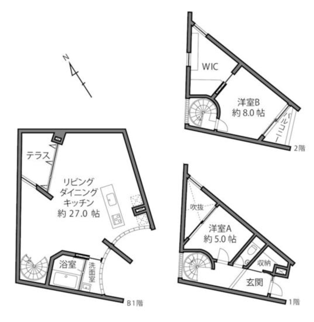 ■成城学園前に停む、ユ二ークな3層メゾネット(地下1階・1階・2階)