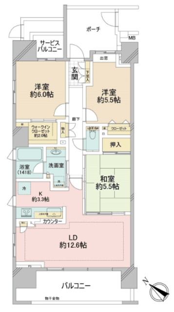 ・サービスバルコニー面積:2.60㎡