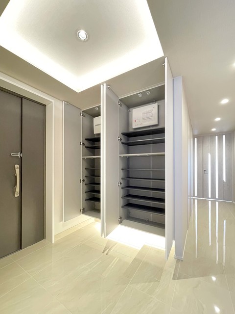 ブラウンのモザイク風タイル貼りが上品な印象を与える、高級低層レジデンス。エントランスは木の温かみある質感を活かしたデザインで、高級感漂う空間が訪れる人を迎えます。ホテルライクな内廊下設計により、プライバシーが守られた上質な住環境を実現。モニター付きオートロックと防犯カメラが、安心の暮らしをサポートします。宅配ボックスも完備され、不在時でもスムーズに荷物を受け取れる利便性が魅力。ペット飼育可(規約に準ず、犬・猫合わせて2匹まで)で、大切な家族との暮らしも叶えられます。