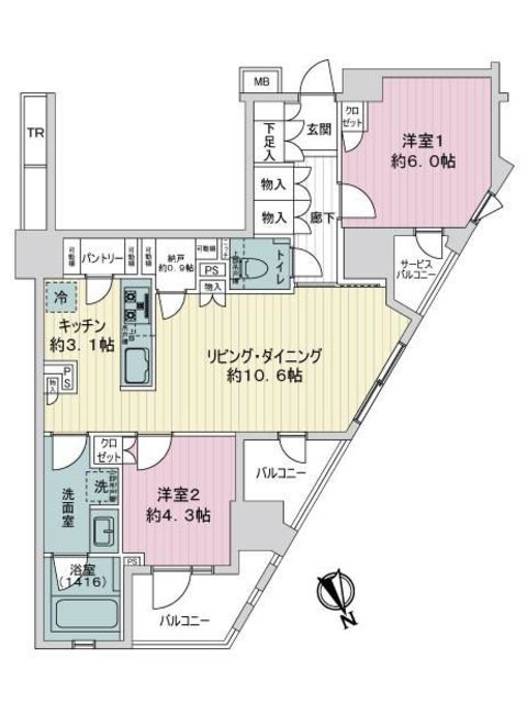 | 専有面積 | 61.63m2 | 所在階 | 4階 |