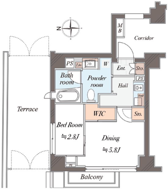 専有面積 29.86m2 バルコニー面積 2.47m2