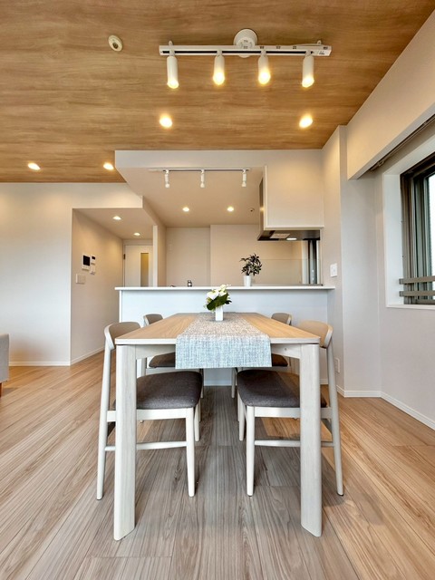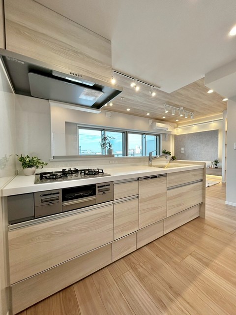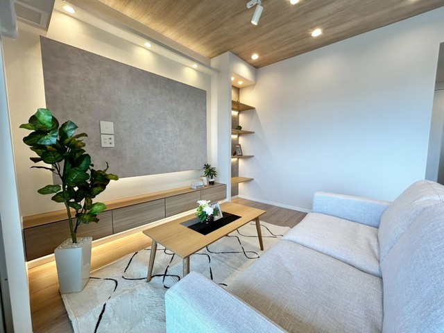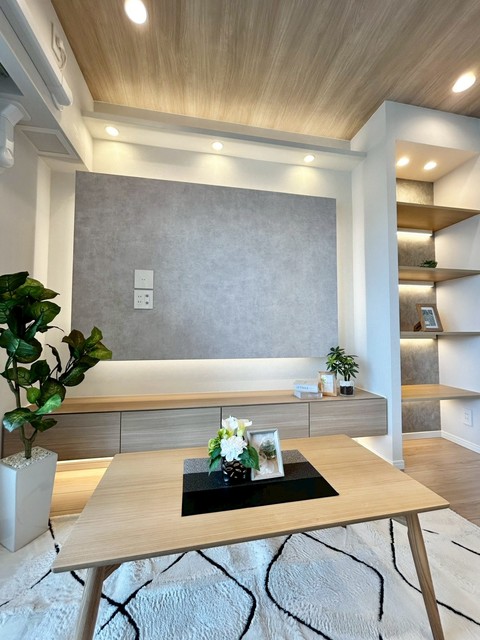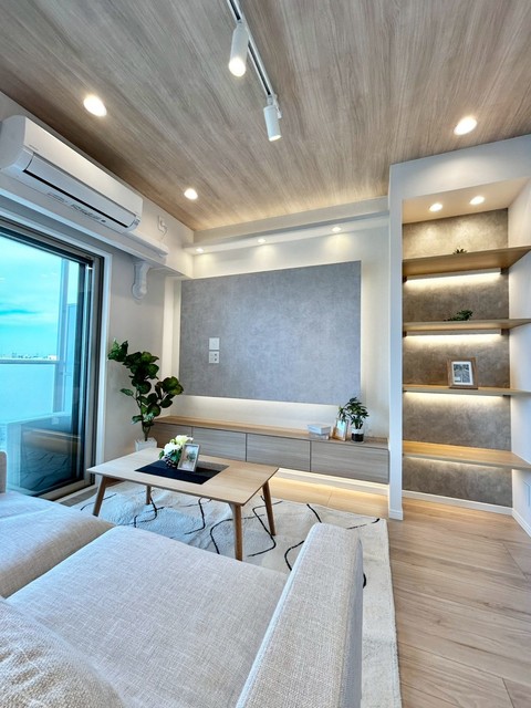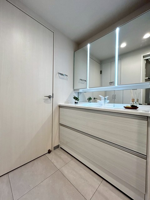 白と桜色のコントラストが美しい大規模マンション。広い敷地にゆったりと建ち、敷地内には桜の木が四季の彩りを添えます。総戸数160戸というスケールメリットを活かし、キッズルーム、スカイサロン、ミュージックルーム(シアタールーム)など共用施設が充実。オートロックと宅配ボックスで日常の利便性とセキュリティも両立しています。