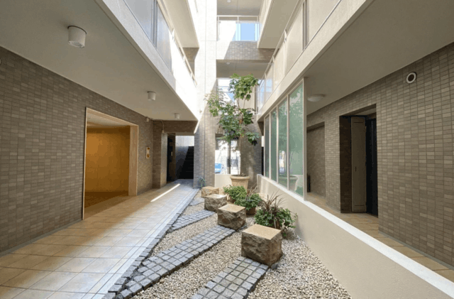 グレージュのタイル貼りで構成された落ち着いた外観。令和5年に大規模修繕工事を実施済みで、建物の良好な状態が保たれています。宅配ボックスを設置し、日中不在がちな方にも利便性の高い設備。防犯センサーも設置され、建物全体のセキュリティを確保し、安心して暮らせる環境です。ペット飼育も可能(細則あり)。駐車場も備え、マイカーをお持ちの方にも対応可能です。