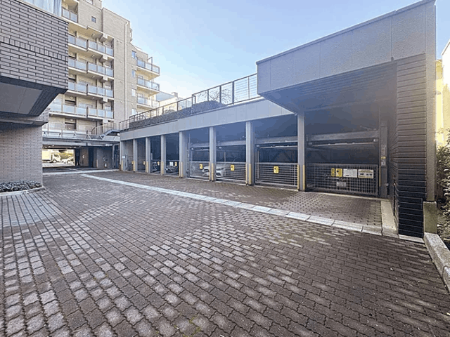 グレージュ系のタイル貼りを基調とした落ち着いた佇まいが特徴の建物。エントランスにはオートロックシステムを導入し、訪問者を確認してから解錠できるため、プライバシーと安心を両立。不在時も荷物を受け取れる宅配ボックスを備え、忙しい日々をサポートします。エレベーターが設置されており、毎日の移動もスムーズ。敷地内には駐車場を用意し、マイカーでの生活にも対応可能です。