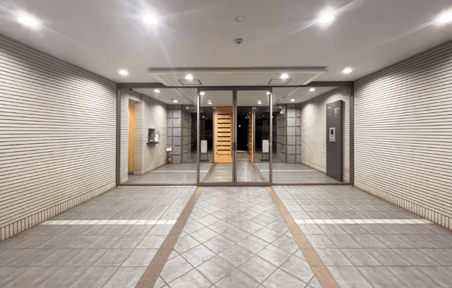 ライトブラウンのタイル貼りを基調としたモダンな外観デザインが特徴で、エントランスにはオートロックが導入されています。共用設備としてエレベーターが設置されており、各階への移動も快適。敷地内には駐車場・バイク置き場・駐輪場が確保されており、各種車両の保管が可能です。ペット飼育についても細則に基づき対応しており、多様な暮らし方の選択肢が整えられた住まいです。