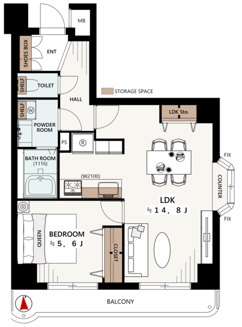 ■約14.8帖&二面採光の縦長LDK