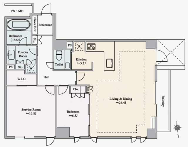 ■サービスルーム10.8帖、ゆとりあるウォークインクロゼット有り