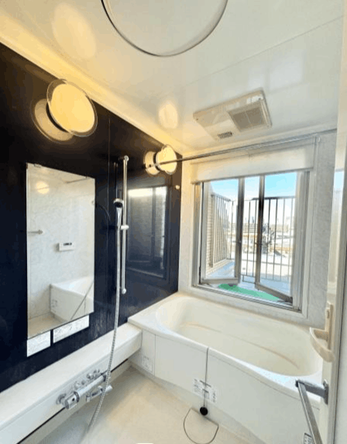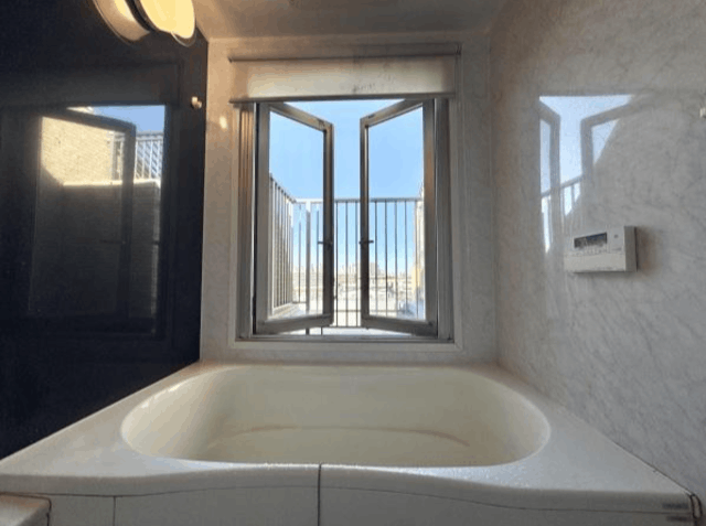 ■大型窓を備えた浴室で、開放感のある入浴空間