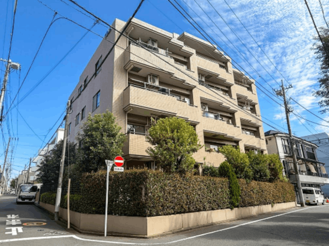 ベージュのタイル貼り外観が穏やかな印象を与える5階建マンション。全26戸のコンパクトな規模で、顔の見えるコミュニティが形成されやすい環境です。オートロック付きで来訪者の確認ができ、セキュリティ面にも配慮。宅配ボックスが設置されており、荷物を好きな時間に受け取れる利便性も十分です。