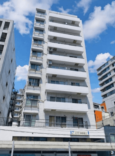 白のタイル貼りが清潔感を演出する、全67戸のマンション。1階部分には飲食店など複数の店舗が入居しており、外食や買い物の利便性も高い立地です。エレベーターが設置され、日々の移動もスムーズ。駐輪場も用意されており、自転車での生活圏拡大にも対応しています。