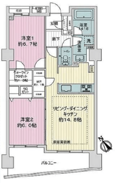 | 間取り | 2LDK | 方角 | 南西 |
