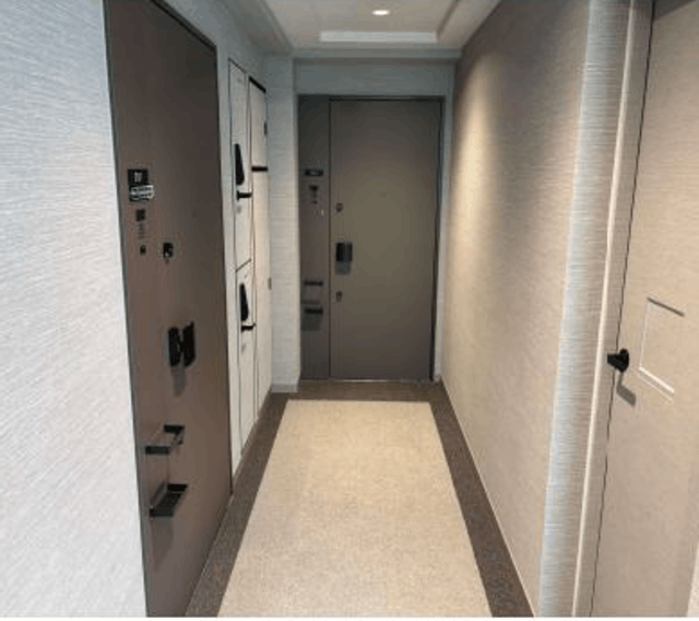 高級感のある内廊下設計を採用し、プライバシーが守られた落ち着いた住環境。同一フロアに2戸のみという贅沢な配置で、高い独立性が確保されています。オートロックで来訪者を確認してから解錠できる安心のセキュリティ。個別宅配ボックスが住戸玄関横に設置されており、プライバシーに配慮された荷物の受け取りが可能。全13戸というコンパクトな規模で、静寂と品格が漂う住まいです。