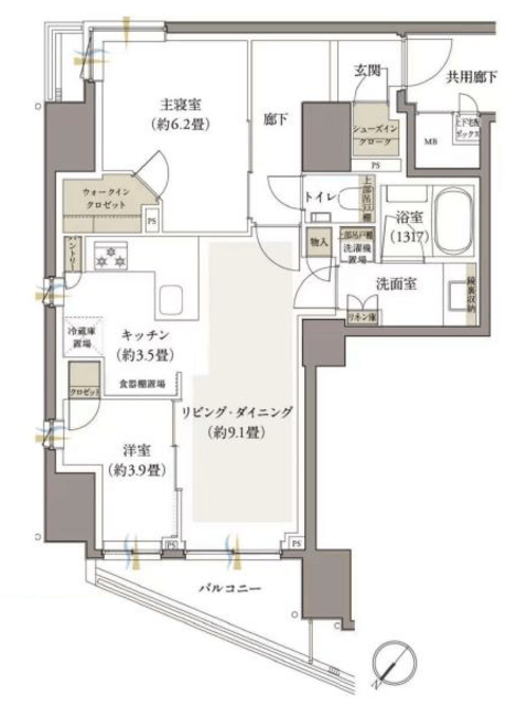 | 専有面積 | 58.12m2 | バルコニー面積 | 6.08m2 |