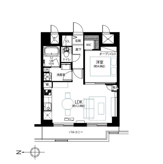 間取り 1LDK 方角 西