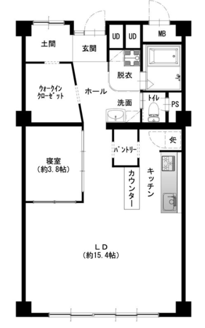 ■可動型のキッチンカウンターがあるリビングは15.41畳!