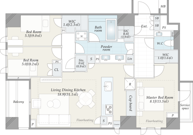 ■専有面積95.38平米の3LDK
