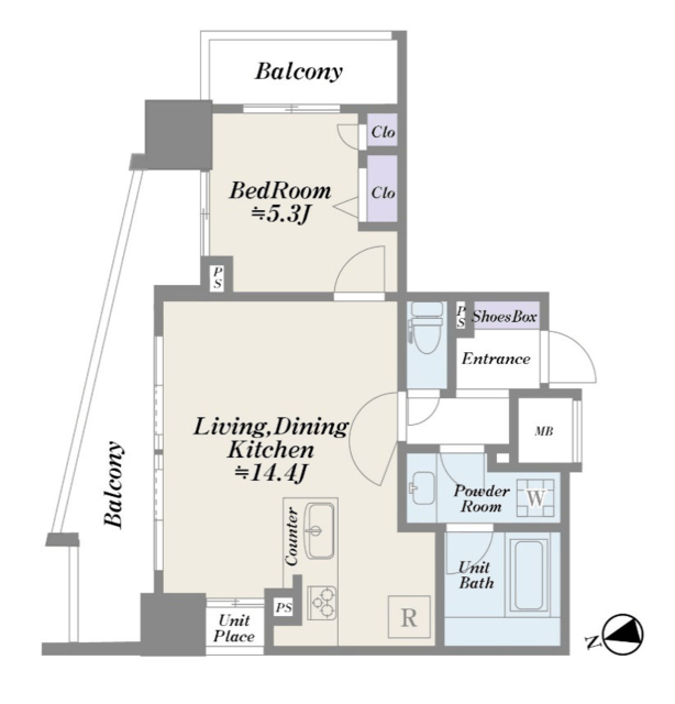 | 専有面積 | 47.47m2 | バルコニー面積 | 15.01m2 |
